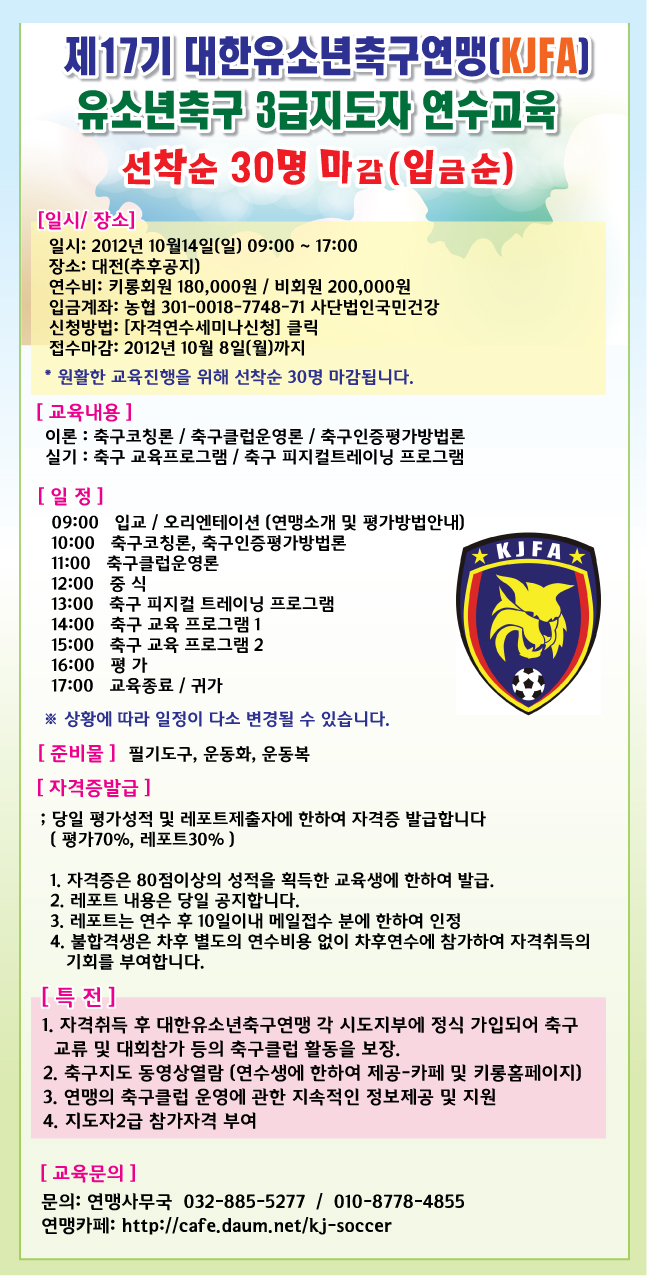 [10/14-´ëÀü] Á¦17±â À¯¼Ò³âÃ౸ 3±Þ ÁöµµÀÚ ¿¬¼ö °øÁö