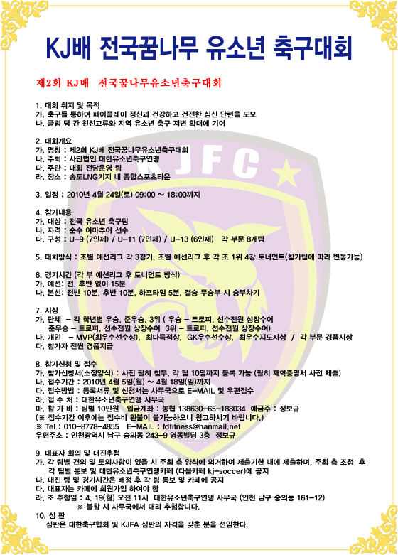 KJ¹è Àü±¹ ²Þ³ª¹« À¯¼Ò³â Ã౸´ëȸ ¾È³»