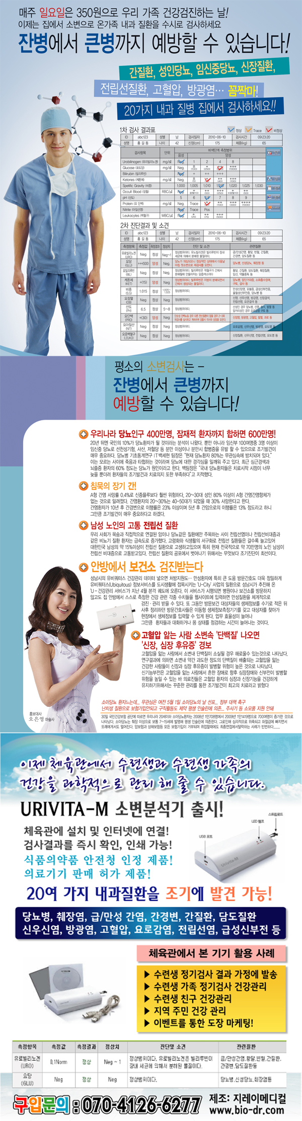 ¡Ø »ç¿ë¹æ¹ýÀº ¸Å¿ì °£´ÜÇÏ°í ½±½À´Ï´Ù. (1¸í´ç 1ºÐ Á¤µµ ¼Ò¿ä) 1) ¹ß¼ÛµÈ CD·Î ÄÄÇ»ÅÍ¿¡ ÇÁ·Î±×·¥ ¼³Ä¡ 2) USB ¼±À¸·Î ¼Òº¯ºÐ¼®±â¿Í ÄÄÇ»ÅÍ ¿¬°á 3) °Ë»ç¿ë ÆÐµå¿¡ ¼Òº¯À» ¹¯Çô ¿Â´Ù 4) ¼Òº¯ºÐ¼®±â¿¡ ¼Òº¯À» ¹¯Èù ÆÐµå »ðÀÔ 5) ÄÄÇ»ÅÍ¿¡ ¼³Ä¡µÈ ÇÁ·Î±×·¥À¸·Î ¼Òº¯ °Ë»ç 6) Áö·¹À̸޵ðÄà ȨÆäÁö·Î ¿¬°áÇÏ¿© ºÐ¼®°á°ú¿Í Áø´Ü¼Ò°ß È®ÀÎ => Àμâ