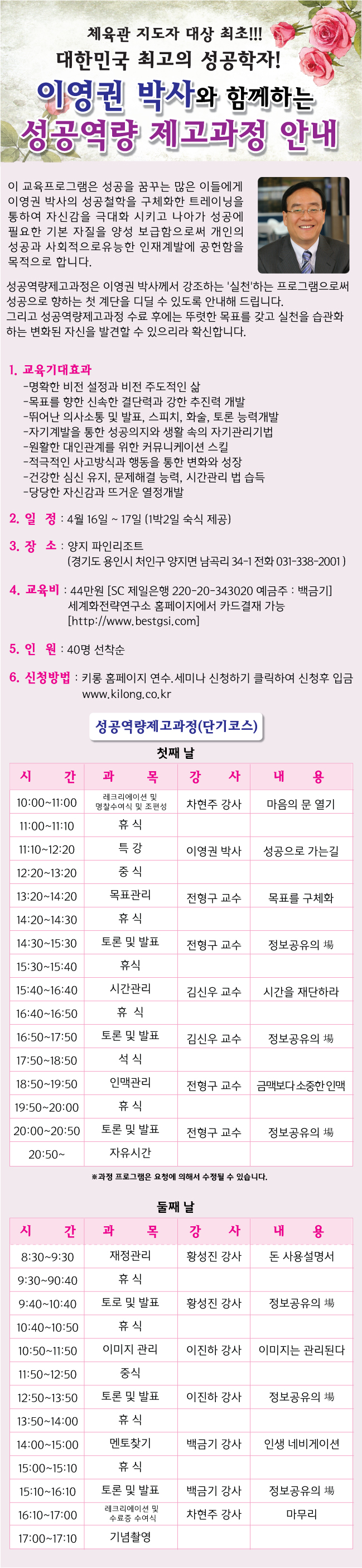 ÀÌ¿µ±Ç ¹Ú»ç¿Í ÇÔ²²ÇÏ´Â ¼º°ø¿ª·® Á¦°í°úÁ¤ ¾È³»