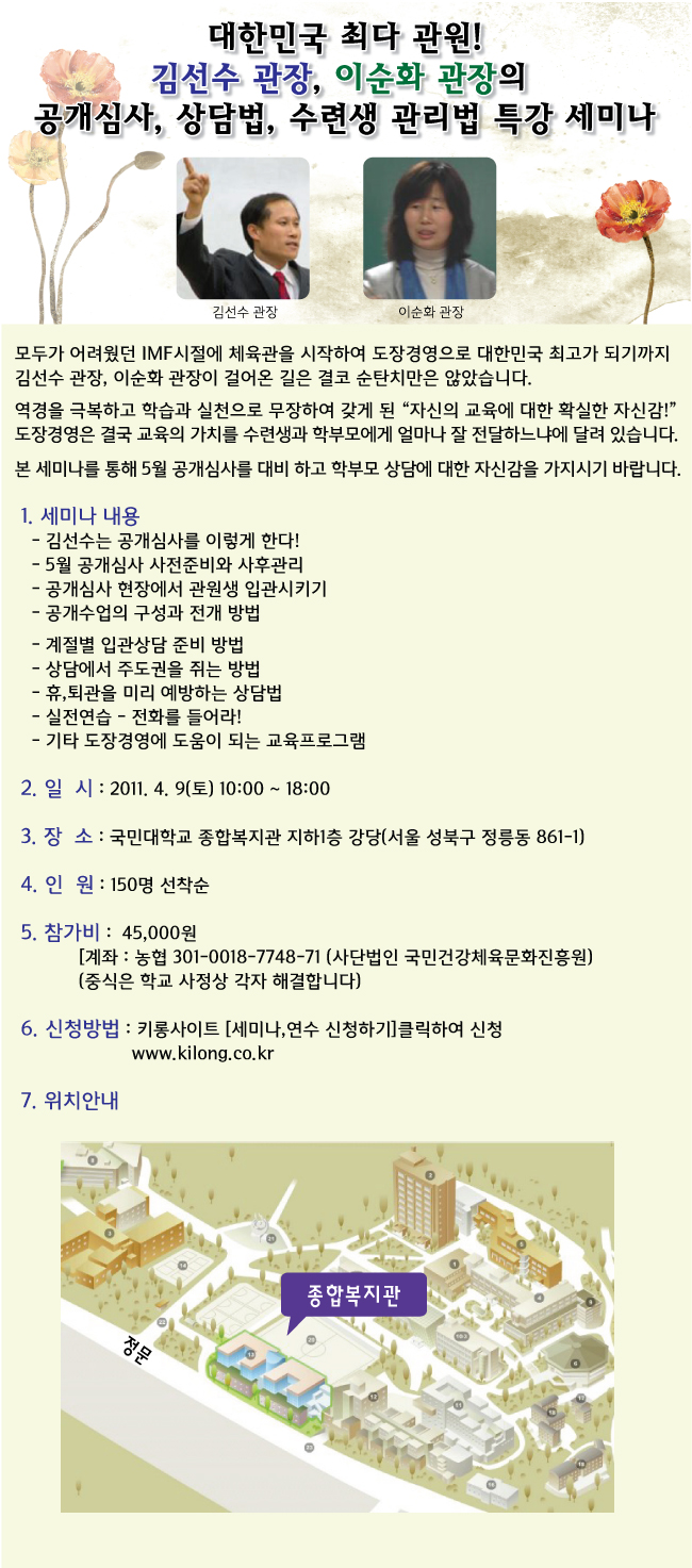 <±¹¹Î´ëÇб³ ¿À½Ã´Â ±æ>- À§Ä¡ : ¼¿ïƯº°½Ã ¼ººÏ±¸ Á¤¸ªµ¿ 861-1 - ±³Åë: ÁöÇÏö 4È£¼± ¼¿ï¿ª-->±æÀ½¿ª(20~25ºÐ ¼Ò¿ä) ±æÀ½¿ª 7¹ø Ãⱸ¿¡¼ ´ëÁß±³Åë ÀÌ¿ë(10ºÐ ¼Ò¿ä)