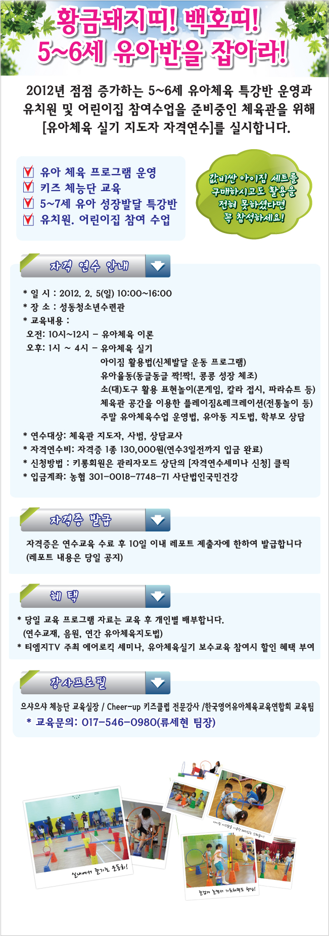 [2/5] 5~6¼¼ À¯¾Æ¹ÝÀ» Àâ¾Æ¶ó! À¯¾ÆÃ¼À°½Ç±â ÁöµµÀÚ ÀÚ°Ý¿¬¼ö ¾È³»!